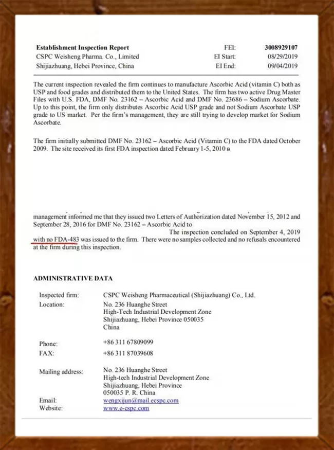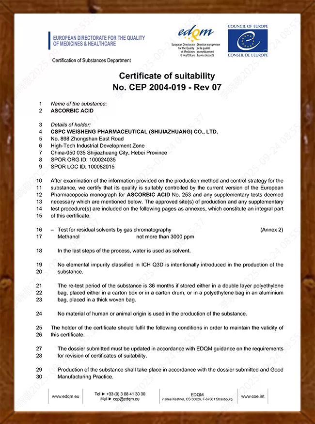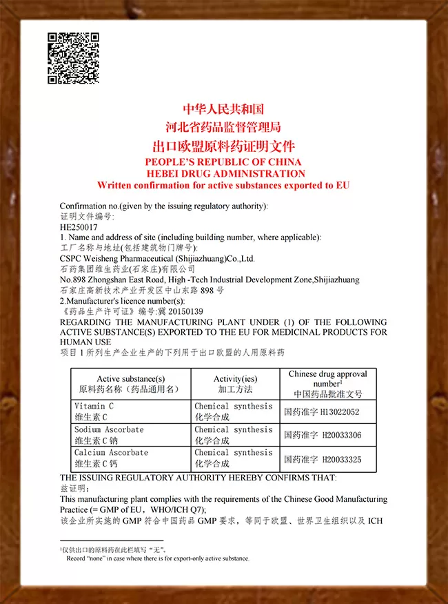 Since 2005, CSPC has been ranked 1st in the world in vitamin C market share